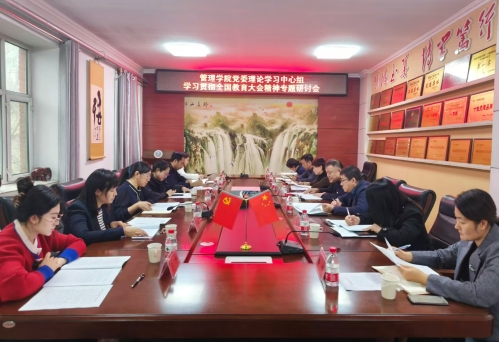 28/ 2024-11管理学院召开党委理论学习中心组学习贯彻全国教育大会精神专题研讨会 28/ 2024-11管理学院召开党委理论学习中心组学习贯彻全国教育大会精神专题研讨会为深入学习贯彻习近平总书记重要讲话和全国教育大会精神,扎实做好习近平同志《论教育》学习宣传工作,11月26日,管理学院在三楼会议室召开党委理论学习中心组学习贯彻全国教育大会精神专题研讨会。经济学院党委书记雷金屹等党委理论学习中心组成员一行6人列席会议,管理学院党委理论学习中心组成员参加会议,会议由管理学院党委书记何景洋主持。会上,何景洋带领大家一起重温了习近平总书记在全国教育大会上重要讲话精神、对习近平总书记《论教育》主要篇目进行了说明,党委副书记徐海英领学了《第一观察:总书记...