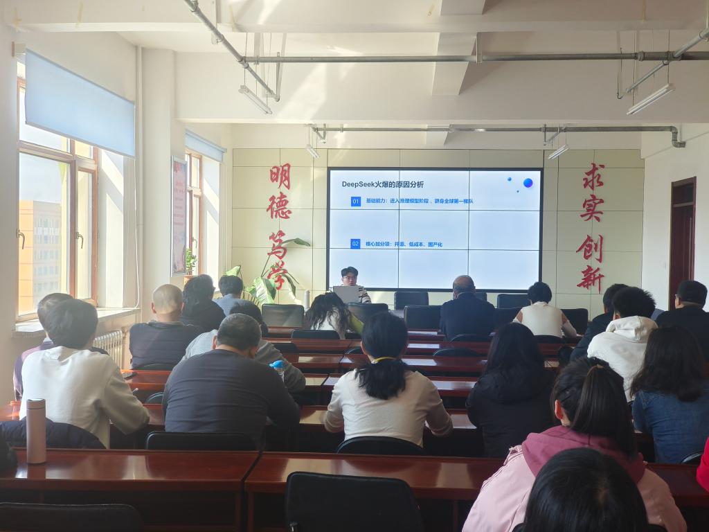 20/ 2025-03管理学院举办数智赋能教科研创新发展专题报告3月18日下午,管理学院依托智能会计产业学院开展“数智赋能教科研创新发展”专题报告,旨在提升全院教师利用人工智能技术与教育教学深度融合能力。活动由教学副院长高太光主持,学院领导班子、全体教师和部分研究生参加。活动邀请金蝶软件(中国)有限公司培训教育事业部东北区总监韩旭升、哈尔滨公司研发总监李庆刚、智慧树网产品经理谢议国三位企业专家,分别围绕“人工智能发展、应用与创新实践”“人工智能赋能高等教育教学新形态——AI教学中心应用”两个专题进行现场讲解和演示,为全体教师科学应对人工智能...