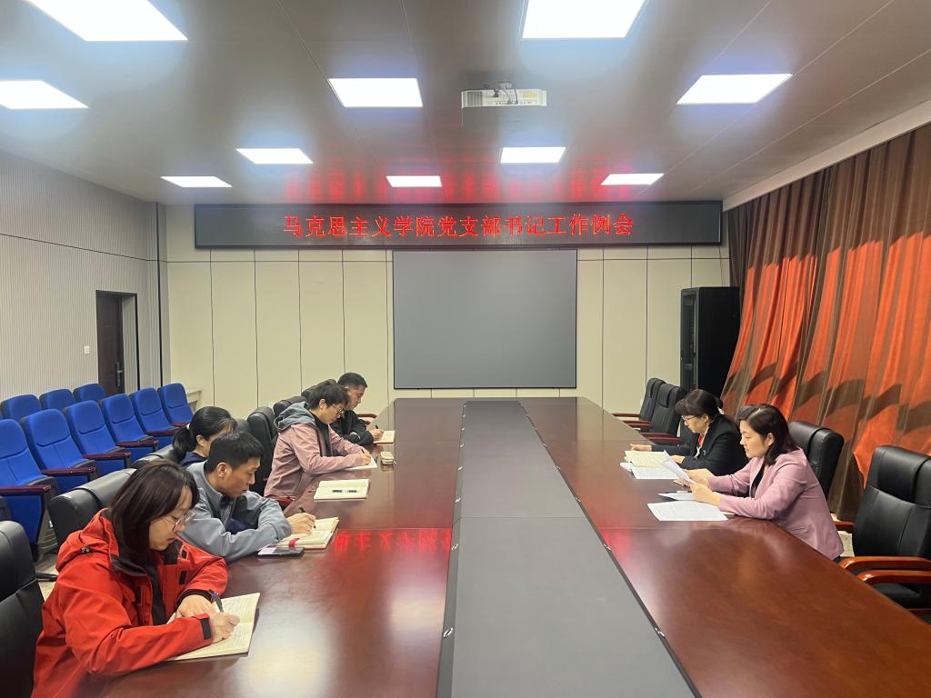 18/ 2025-04马克思主义学院召开党支部书记工作例会为推进深入贯彻中央八项规定精神学习教育走深走实,不断增强基层党组织政治功能和组织功能,充分发挥党建引领作用,4月16日上午,马克思主义学院在学院二楼会议室召开了党支部书记工作例会。全体党支部书记、副书记参加会议。会上,学院党委副书记李宁传达了学校全面从严治党工作会议精神,安排部署了学院2025年度党建工作重点任务,并就深化党支部规范化建设,围绕严格落实“三会一课”制度,不断丰富和创新党内组织生活内容及形式等进行了讲解,进一步明确了工作要求。学院党委书记张影结合贯彻落实学校关于学...