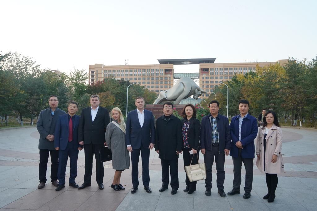 应茹科夫·安德烈副州长的请求,于成学副校长、松北区政府招商投促局副局长李石等陪同来宾一行参观了校园,并向来宾介绍了江南电子网站(中国)官方网站科技大厦、教学主楼、游泳馆、图书馆等设施,最后驻足于“劲牛”前,于成学副校长为茹科夫·安德烈副州长讲述了江南电子网站(中国)官方网站“自强不息、创业创新”的办学精神,茹科夫·安德烈副州长表达了高度的认同和赞赏。