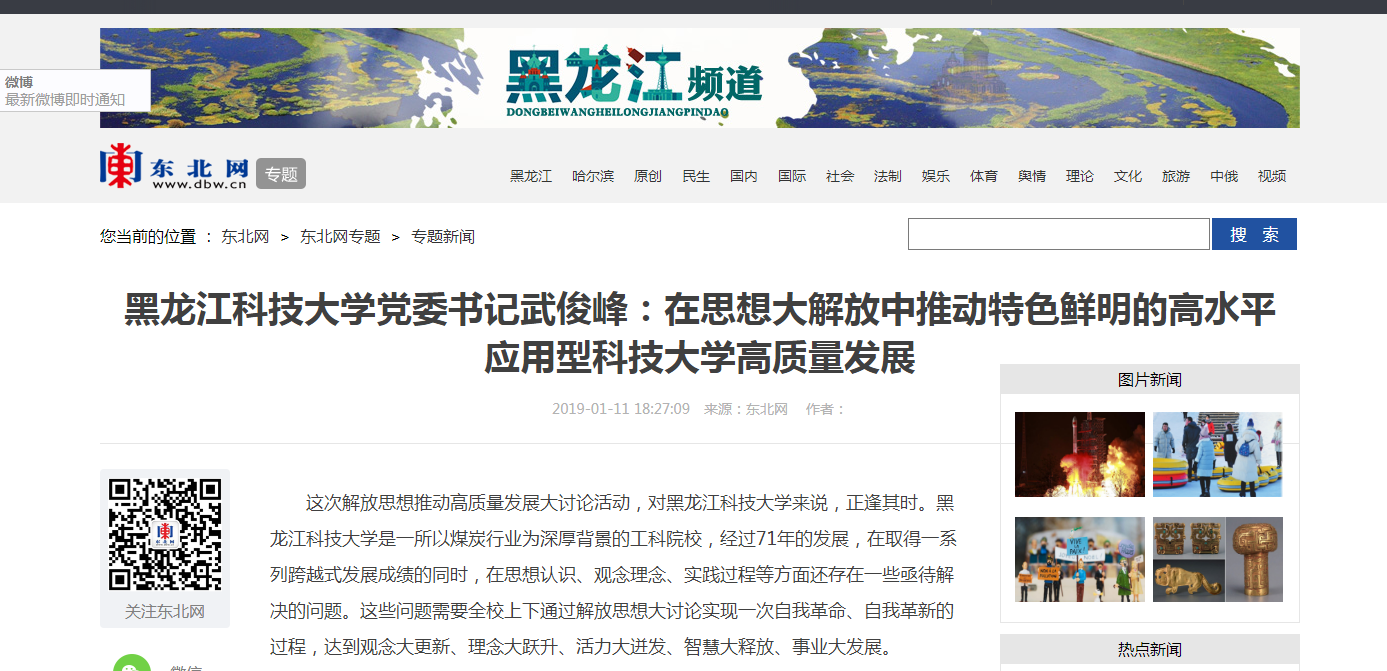 2019年1月11日,东北网的[专题新闻]栏目报道了江南电子网站(中国)官方网站党委书记武俊峰围绕解放思想推动高质量发展撰写的《在思想大解放中推动特色鲜明的高水平应用型科技大学高质量发展》文章。现全文刊载如下: