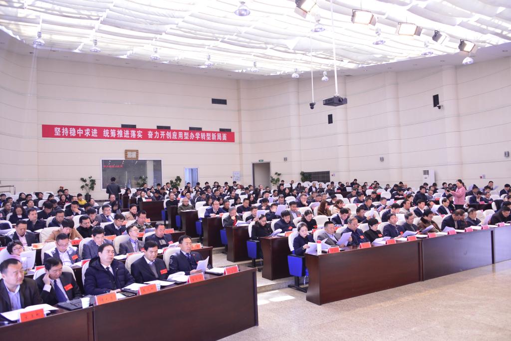 郝传波指出,今年行政工作的总基调和总要求是“坚持稳中求进,统筹推进落实”,总体思路是党委领导,思想引领,问题导向,稳中求进,狠抓落实。围绕奋力开创应用型办学转型新局面,要重点做好六方面主要工作:一是以冲击建设我省“高水平应用型本科示范高校”为目标,实施战略转型再出发。要以“应用型定位”为统领,在“八个深入转变”上下功夫,即人才培养向“应用型”深入转变,专业设置向“需求导向”深入转变,根本路径向“产教融合,校企合作”深入转变,课程体系向“能力导向”深入转变,实践资源向“协同共建”深入转变,师资队伍向“双师双能型”深入转变,学科专业向“特色发展”深入转变,评价机制向“立德树人成效”深入转变。二是狠抓全国全省教育大会和教育工作会议精神落实,努力提升立德树人培养质量。要着力在“增长知识见识”“培养奋斗精神”“增强综合素质”上下功夫;要着力在“坚定理想信念”“厚植爱国主义情怀”“加强品德修养”上下功夫。三是狠抓习近平总书记在深入推进东北振兴座谈会上的重要讲话和考察黑龙江的重要指示精神的落实,着力提升服务龙江全面振兴全方位振兴能力。坚持围绕龙江振兴大局,切实增强学科和科技服务发展能力,在产学研用协同创新上发挥积极作用,为龙江振兴提供优质的人力资源和充足的创新动力,努力展现新担当、实现新作为,推动习近平总书记的重要讲话和重要指示精神落实。四是贯彻落实习近平总书记新时代“人才观”思想,努力提升师资队伍的整体水平。要加强人才强校战略的顶层设计,做好学校的“头雁”行动,建好学校人才队伍的“四梁八柱”;要下大力气“敬才用才育才”,想实招、谋实策、求实效,在“固巢留凤”和“筑巢引凤”上下功夫。五是创新教育理念,推进学校治理体系和治理能力现代化,释放内在潜力。 要抓实治理主体这个关键因素,抓实治理体系这个重要保障,创新治理能力这个动力所在。六是坚持以人为本,打造风清气正的良好校园育人生态,凝聚转型发展的强劲力量。担当尽责、真抓实干,积极展现奋发有为的新风貌,开辟服务师生的新境界,一如既往地办好民生工程“十件实事”,建设幸福家园、爱心家园、健康家园、美丽家园、和谐家园、温馨家园、信息家园、快乐家园、文化家园、平安家园。