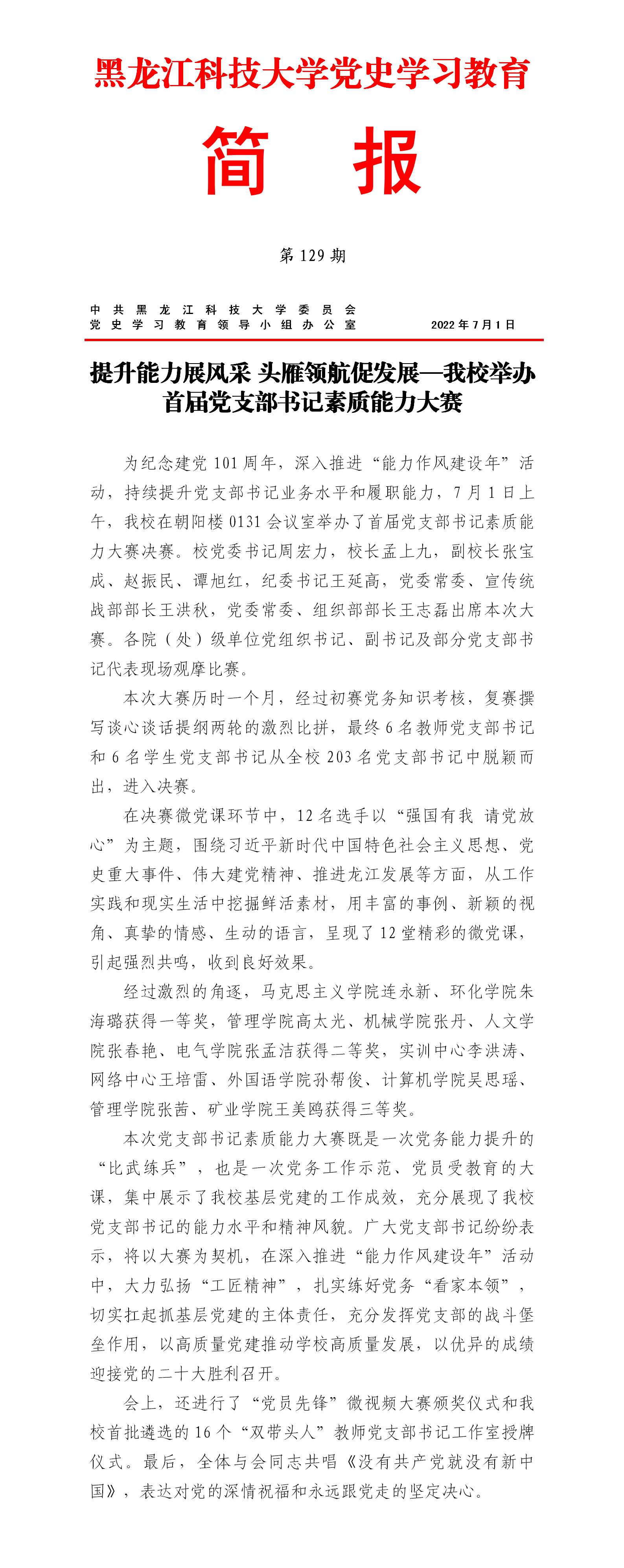 党史学习教育工作简报(第129期)