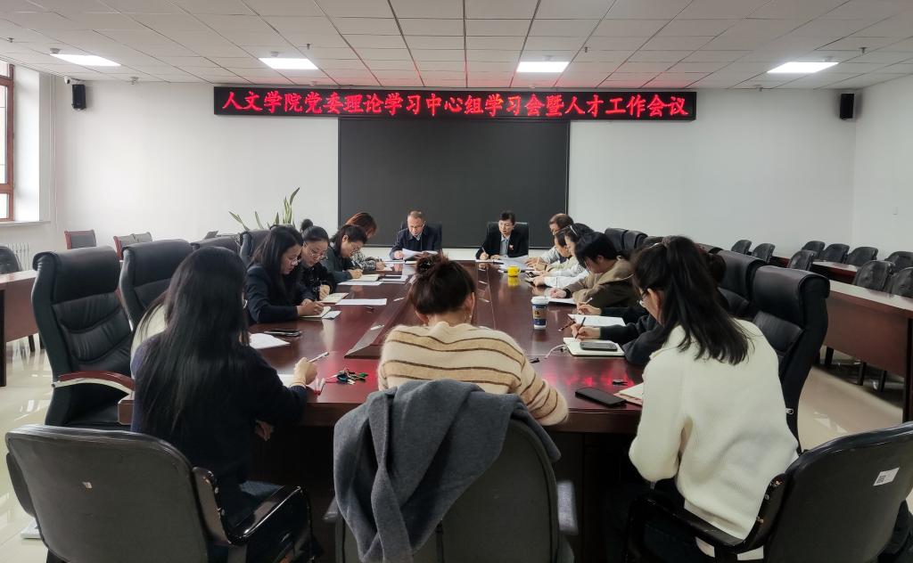 为深入学习贯彻习近平总书记关于人才工作的重要论述,全面贯彻落实学校2025年人才引进工作动员及推进会会议精神,推进党建与业务工作深度融合,全方位培养、引进、用好人才,为推动学院高质量发展提供人才支撑,11月15日下午,人文学院在朝阳楼0317会议室召开党委理论学习中心组学习会议暨人才工作会议。会议由党委书记孙晓辉主持,学院党委理论学习中心组成员、教研室主任、博士教师参加会议。