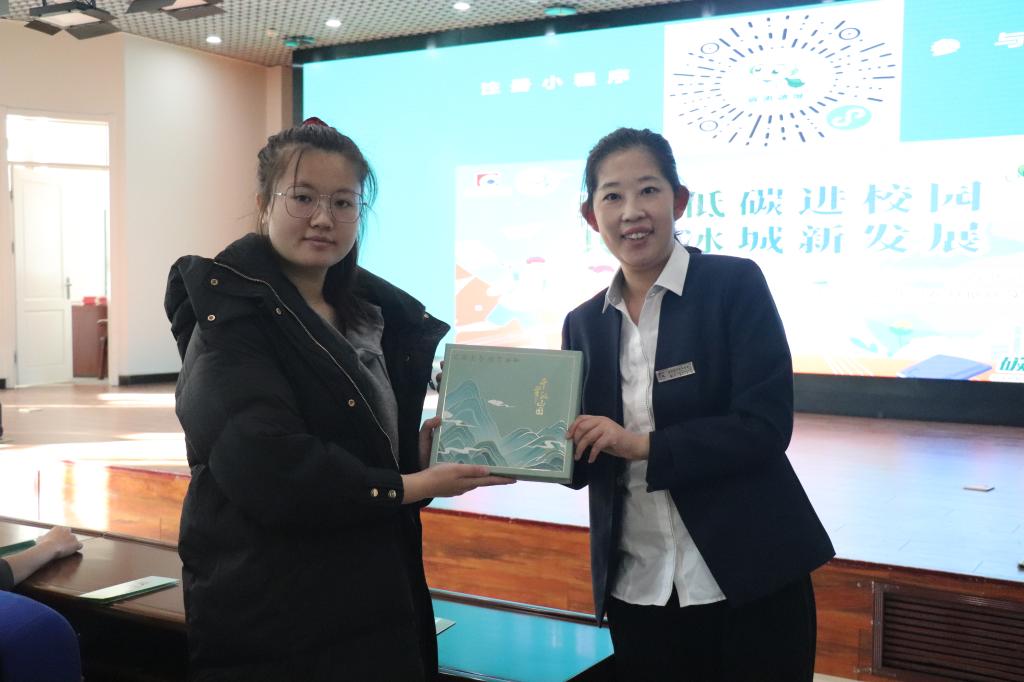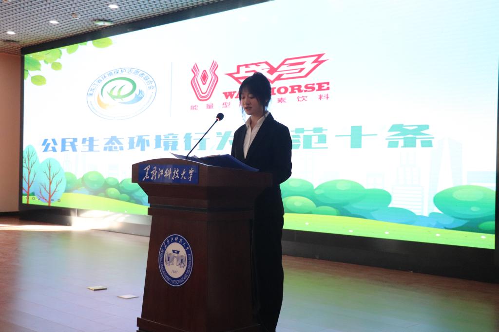 活动中,校青年志愿者协会宣传策划部负责人李想对《公民生态环境行为规范十条》进行了宣传解读,呼吁大家重视生态环境、绿色消费、低碳出行,争做生态文明建设的奉献者、践行者、传播者和引领者;哈尔滨产权交易所环境权益服务部负责人王淑艳对“碳惠冰城”——哈尔滨碳普惠平台进行了推介并与现场同学进行了互动,同学们参加了线上“绿色低碳进校园”调查问卷活动。