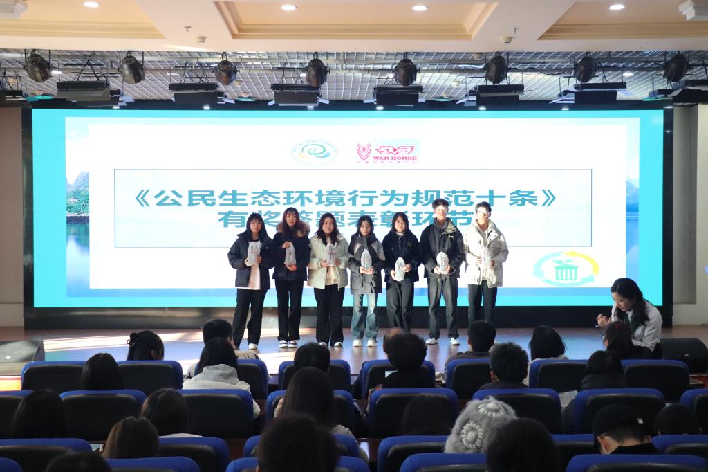 活动期间,黑龙江省环境保护志愿者联合会还为2024年参加《公民生态环境行为规范十条》有奖答题获奖同学颁发了奖品;还开展了有奖问答、减塑宣传用语设计、“有能量放马来”短视频、空瓶子兑换饮料等环保宣传活动。