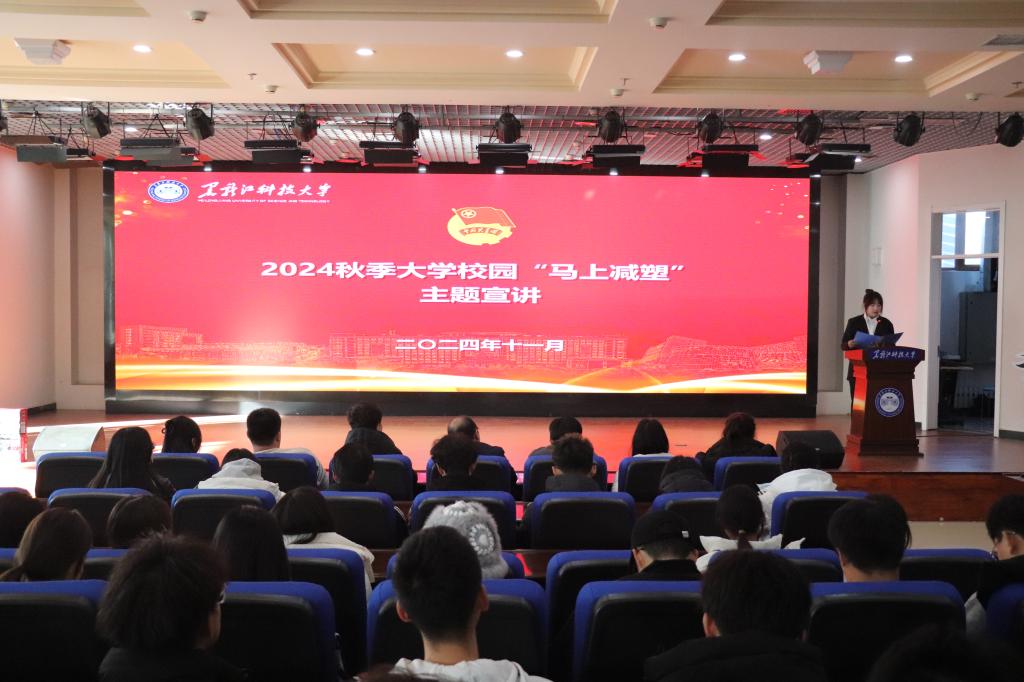 为深入宣传普及绿色低碳生活理念,营造绿色低碳良好校园氛围。11月17日,2024秋季大学校园“马上减塑”主题宣讲活动在朝阳楼0131室举办。校团委副书记陈曦、黑龙江省环境保护志愿者联合会副秘书长许艳波、哈尔滨产权交易所环境权益服务部负责人王淑艳及校青年志愿者协会近300名志愿者参加了活动。