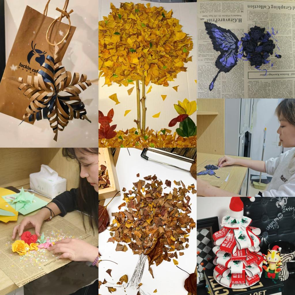 以美润心田。为鼓励学生发挥创新精神,提高环保意识,传播绿色生活方式,学院开展“变废为宝”学生社区环保创意设计大赛。本次比赛吸引了众多学生积极参与,参赛作品形式多样,涵盖了环保主题的手工艺品、公益广告等多个领域。最终评选出了一等奖、二等奖、三等奖及优秀奖共15人。本次创意设计大赛以创新与实践为引领,通过对废旧材料的二次创作,积极探索美育与环保的深度融合。