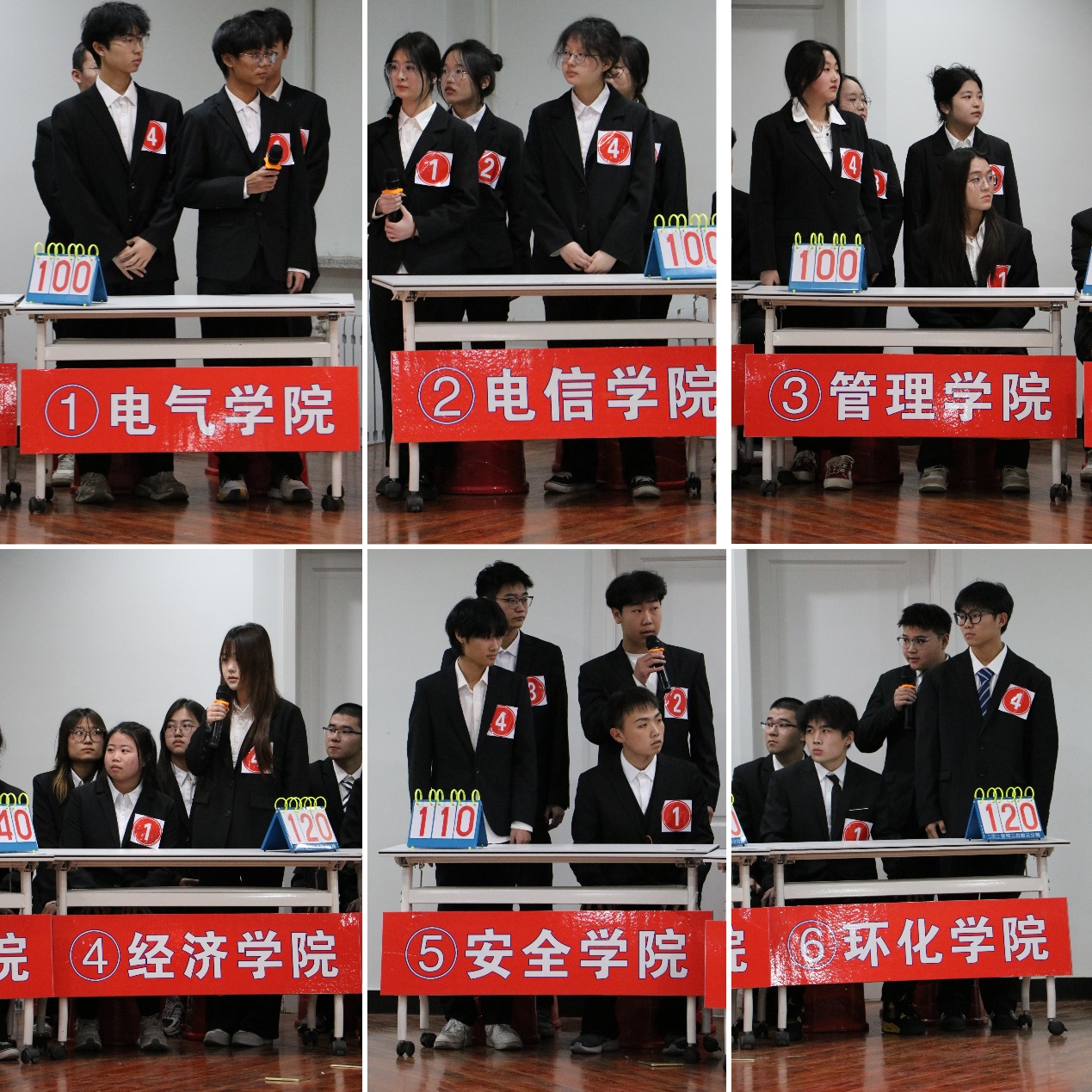 本次知识竞赛紧密围绕《学生管理规定》《学生先进个人和先进集体评选办法》《奖助学金评审管理办法》等学生日常管理、学生社区管理和学风建设类文件制度,经过学院初赛、学校复赛的选拔推荐,最终环化学院、安全学院、电气学院、电信学院、管理学院、经济学院等六支参赛队伍脱颖而出,进入最终决赛。