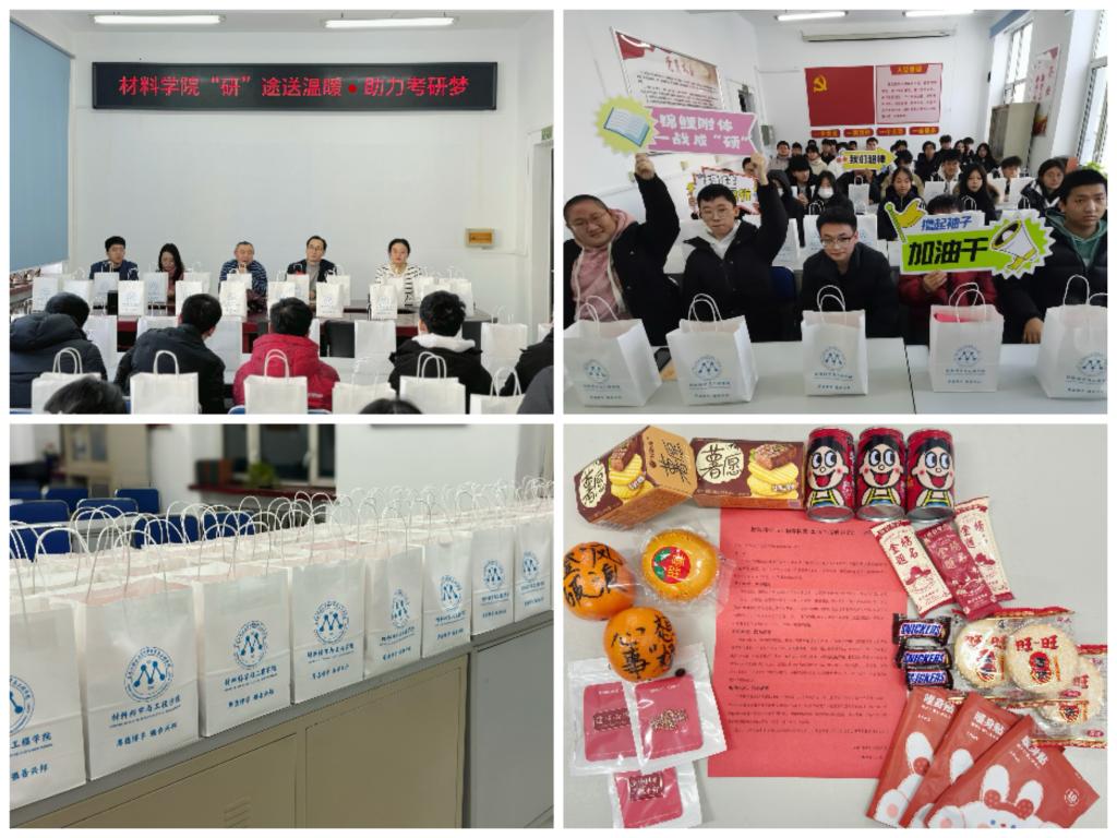 为帮助2025届考研学子缓解临考紧张情绪,提升应试能力,坚定考试信心,以饱满的精神状态跑完考研最后“一公里”。12月3日中午,材料科学与工程学院组织开展了“研”途送温暖·助力考研梦2025届考研学生慰问活动。学院党委书记张显栋、副院长吴岩、青年博士教师顾缘缘、学工办负责人王伟骅及2025届考研学生参加活动。活动由学院党委副书记孙亚朋主持。