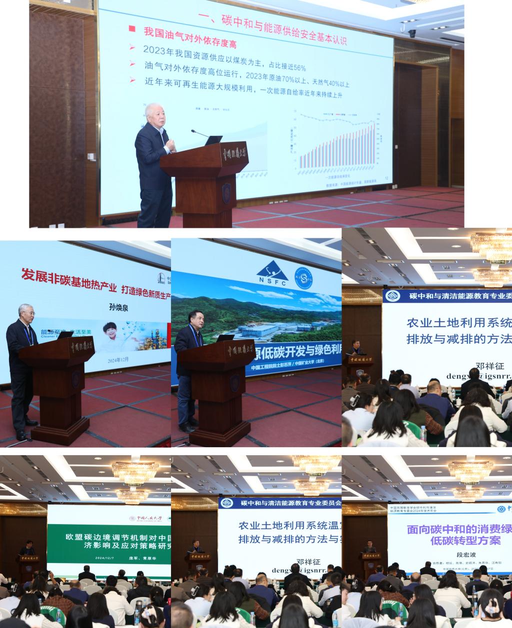 黄维和院士、孙焕泉院士、彭苏萍院士在上午做大会主旨报告,分享在能源开发利用与绿色新质生产力方面的最新研究成果。下午,北京工商大学副校长邓祥征教授、北京理工大学经济学院院长王兆华教授、国家气候战略中心战略规划部主任柴麒敏研究员、北京大学城市与环境学院刘宇教授就碳中和趋势下人才培养和工业领域低碳转型、政策选择等主题做大会报告,中国科学院大学经济管理学院段宏波教授、中国人民大学生态环境学院院长庞军教授、北京知链科技有限公司总裁刘全宝、中国电促会碳达峰碳中和专业委员会会长刘劲松就面向碳中和的消费低碳转型方案和跨学科实践等主题做大会报告。