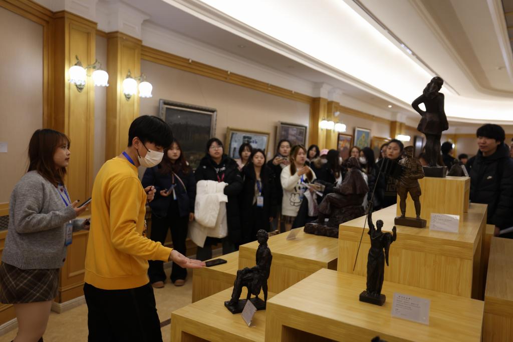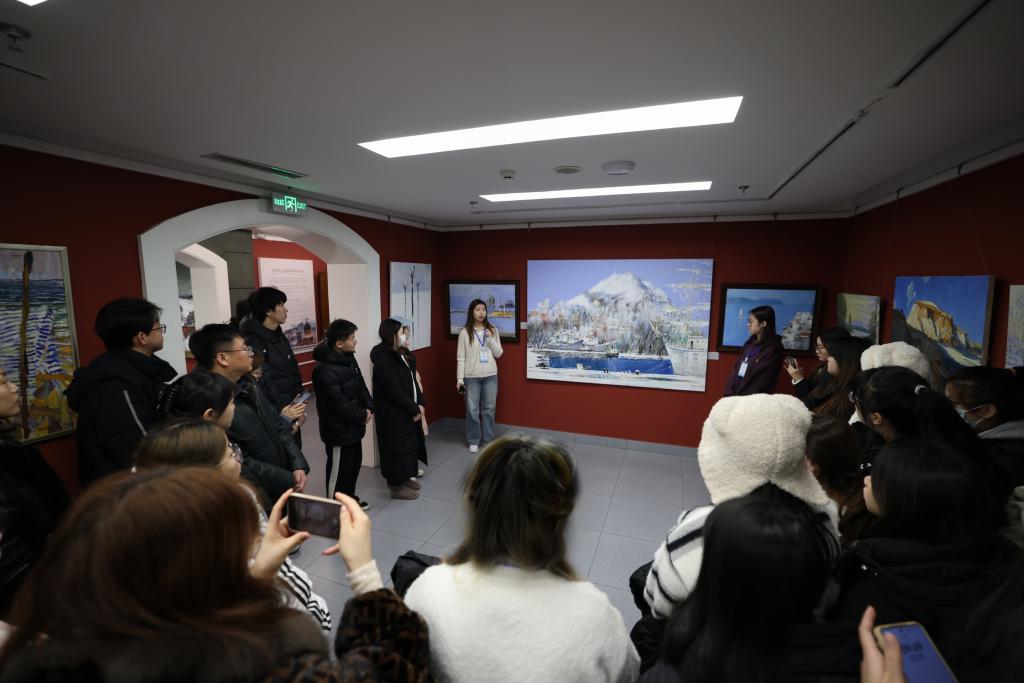 为拓宽学生文化视野,感受艺术魅力,提升审美情趣,12月3日上午,外国语学院俄语系组织2022级俄语专业53名学生赴太阳岛参观韩建民中俄油画收藏馆。俄罗斯专家米罗诺娃·亚历山大·阿纳托利耶夫娜、哈尔琴科·伊莲娜·芙拉基米罗芙娜、外国语学院党委书记张海涛、副院长曲铭欣及俄语系教师一同参加活动,活动由俄语系主任鞠传婷主持。