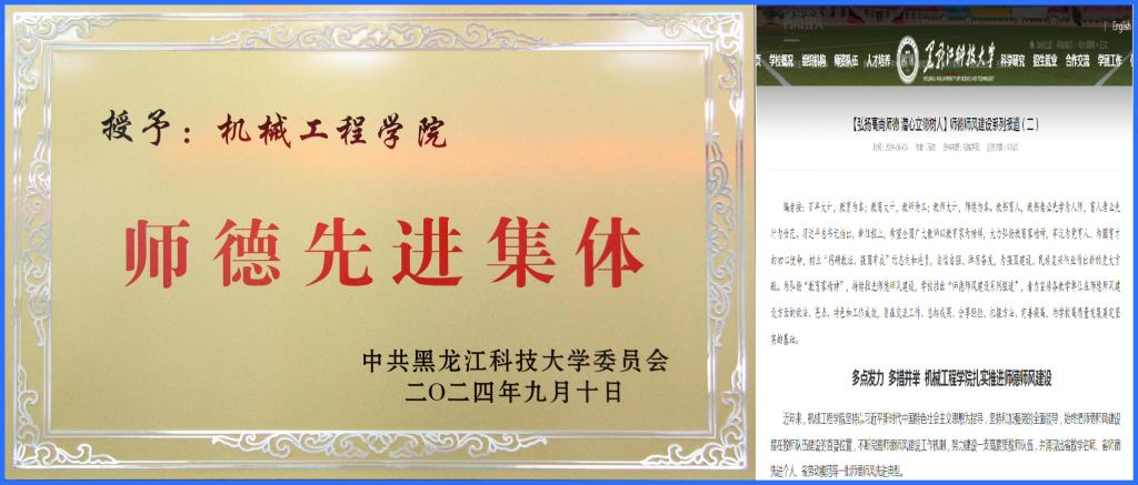 全年课程思政建设捷报频传:除获批“黑龙江省研究生课程思政教学研究中心”外,还获学校“课程思政建设示范学院”;《工程图学》课程获批“省高等学校课程思政示范课程和教学团队”;《机械系统动力学》课程获批“省研究生课程思政建设项目课程思政案例”;《机械制造工程学》课程思政优秀案例在“新华网新华思政”平台进行展播;还有2门课程和2个案例获批校级课程思政示范课程和教学团队及课程思政优秀教学案例。