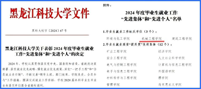 12月6日,学校印发《关于表彰2024年度毕业生就业工作“先进集体”和“先进个人”的决定》,学院荣获学校“毕业生就业工作标兵单位”。这也是学院连续第3年获此殊荣。学院2024届毕业生就业率达92.53%,并涌现出以机械20-5班考研率近40%为代表的就业优秀班级。