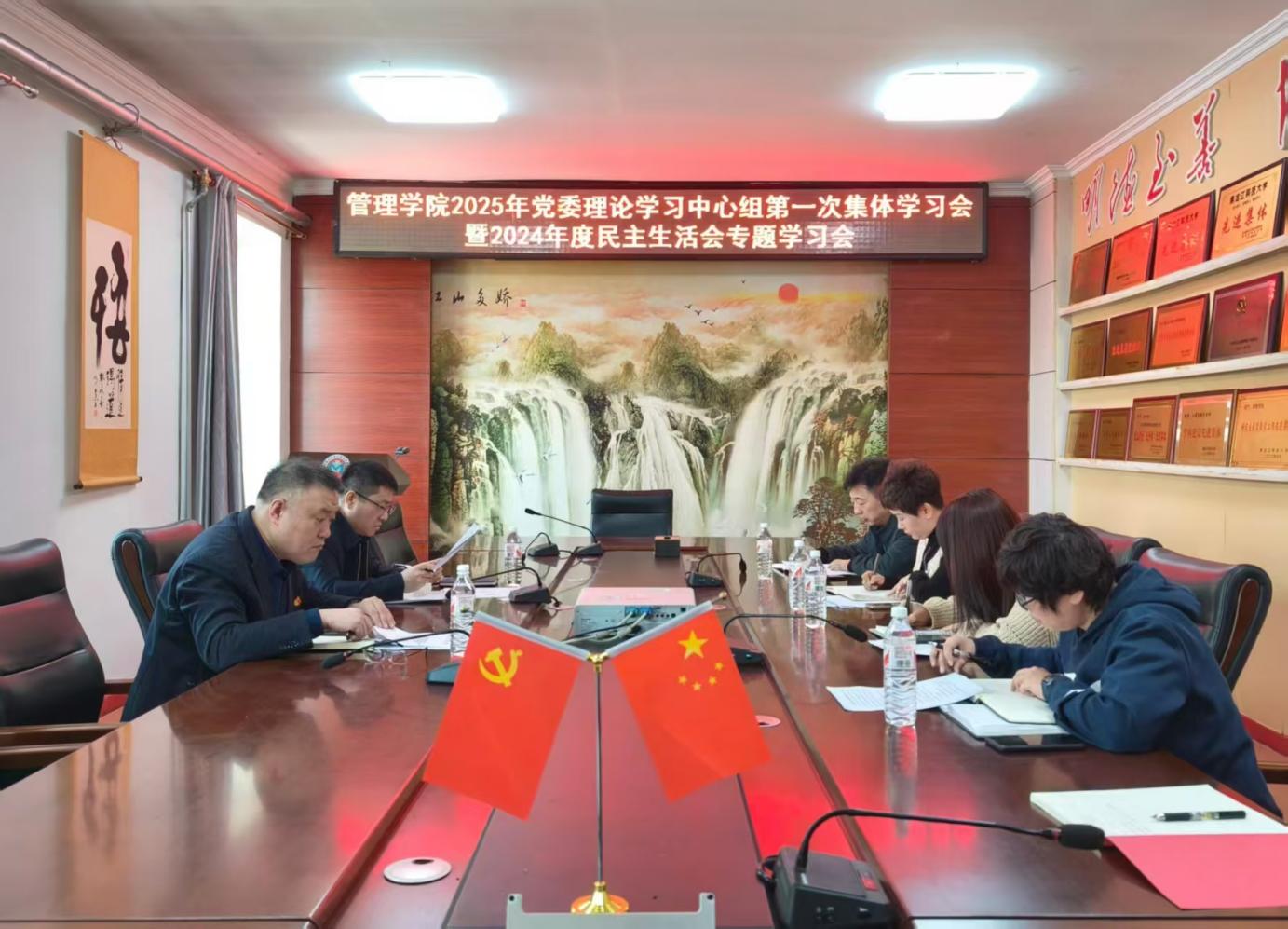 按照上级部署要求和学校党委工作安排,2月27日上午,管理学院在三楼会议室召开党委理论学习中心组2025年第1次集体学习会暨2024年度民主生活会专题学习会。学院党委书记何景洋主持领学并讲话,学院党委理论学习中心组成员参加会议。