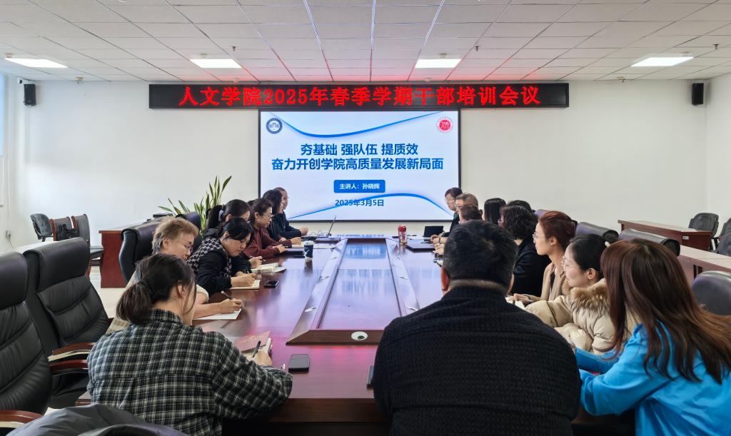 向实向“优”,做到培训要求到位。为深入贯彻落实全省深化能力作风建设工作会议及学校二届二次教职工代表大会暨2025年度工作部署会议精神,学院于3月5日上午召开2025年春季学期干部培训会议,会议由党委副书记杨凤娟主持。会上,院长曹景萍认真传达了校长孟上九所作的工作报告和校党委书记周宏力讲话精神。随后,党委书记孙晓辉以《夯基础 强队伍 提质效 奋力开创学院高质量发展新局面》为主题开展培训,对学院2024年工作进行了简要回顾,要求全院党员干部以深化“三治一创”为抓手持续深化能力作风,以力戒形式主义、养成闭环思维、做到团结奋进为重点持续解放思想、更新观念,加强对推进新文科高质量发展的学习思考,鼓足干劲,再谱新篇,争做信念如磐、担当如砥、温润如玉的好干部。