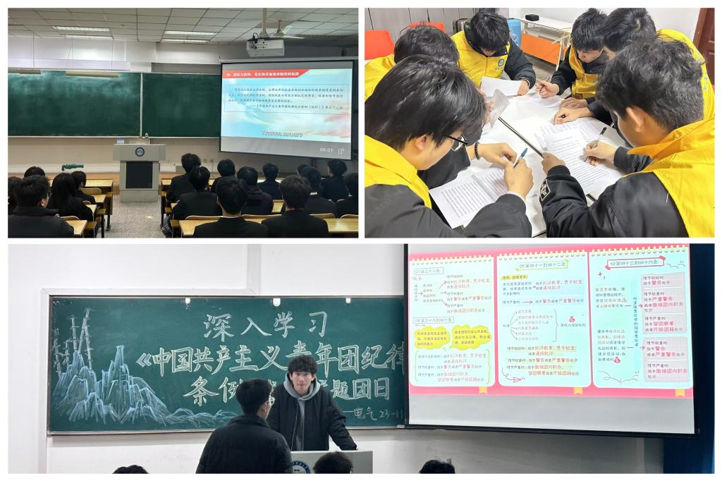 校青年志愿者协会团支部结合考风考纪、学生日常管理规定进行深入研讨,在研讨中以案例让团纪“活”起来。电气学院团委对《中国共产主义青年团纪律处分条例(试行)》思维导图进行原原本本学,帮助团员青年更直观、更系统地理解《条例》内容,并将内容要点提炼、重点知识总结归纳,持续推动青年学生学清楚,用明白。材料学院团委、电信学院团委、建工学院团委、计算机学院团委,将《条例》与《江南电子网站(中国)官方网站学生管理规定》进行逐条对照解读,采取“一案一点评、一案一剖析”的方式,提升学习质效。