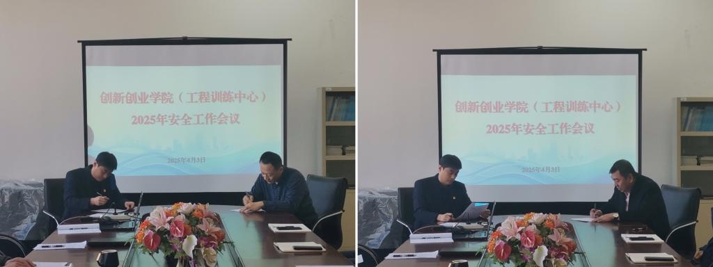 4月3日上午,创新创业学院(工程训练中心)在学院会议室召开2025年安全工作会议。学院领导、教研室主任副主任、科室负责人参加会议,会议由党总支书记、院长谭平主持。