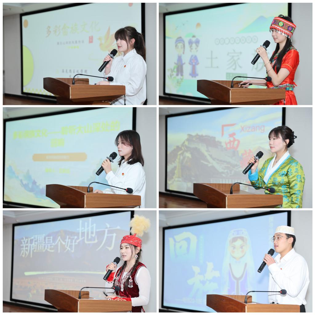 活动现场高潮迭起、精彩纷呈,畲族、土家族、侗族、藏族、哈萨克族、回族等少数民族学生代表分别从地域特色、传统节日、民族服饰等方面进行民族展示,表演了精彩的民族歌曲和舞蹈,让同学们大开眼界。第二十三期团校学员金融24-3班祖比达·依斯马、第十六期“青马班”学员电信22-1班李祥泰做了心得分享,表达了要讲好中华民族交往交流交融故事,发出民族团结进步“好声音”的信心和决心。