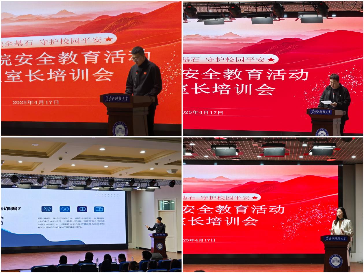 为扎实推进“以学铸魂 锤炼本领 慎思笃行 敢作善为”主题思想教育活动,进一步强化校园安全管理,提升学生安全防范意识,电气与控制工程学院于4月17日开展安全教育活动暨寝室长培训会,哈尔滨市松北分局松浦派出所刘柏麟警官、各年级辅导员及200余名寝室长参加活动。