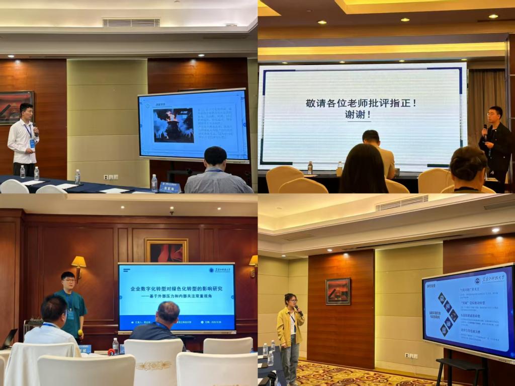 工商管理学硕士余浦东在能源转型与气候治理分会场做了题为《传统能源企业供应链低碳转型驱动路径——基于我国125个能源上市企业的fsQCA研究》的汇报;工商管理学硕士申双龙和公共管理学硕士刘丹在碳排放与碳市场分会场分别做了题为《数字技术应用对制造业减污降碳协同效应的影响》《考虑低碳成本分担的制造商主导闭环供应链动态决策研究》的汇报;工商管理学硕士邢志华在能源安全与绿色发展分会场做了题为《企业数字化转型对绿色化转型的影响研究——基于外部压力和内部关注双重视角》的汇报。