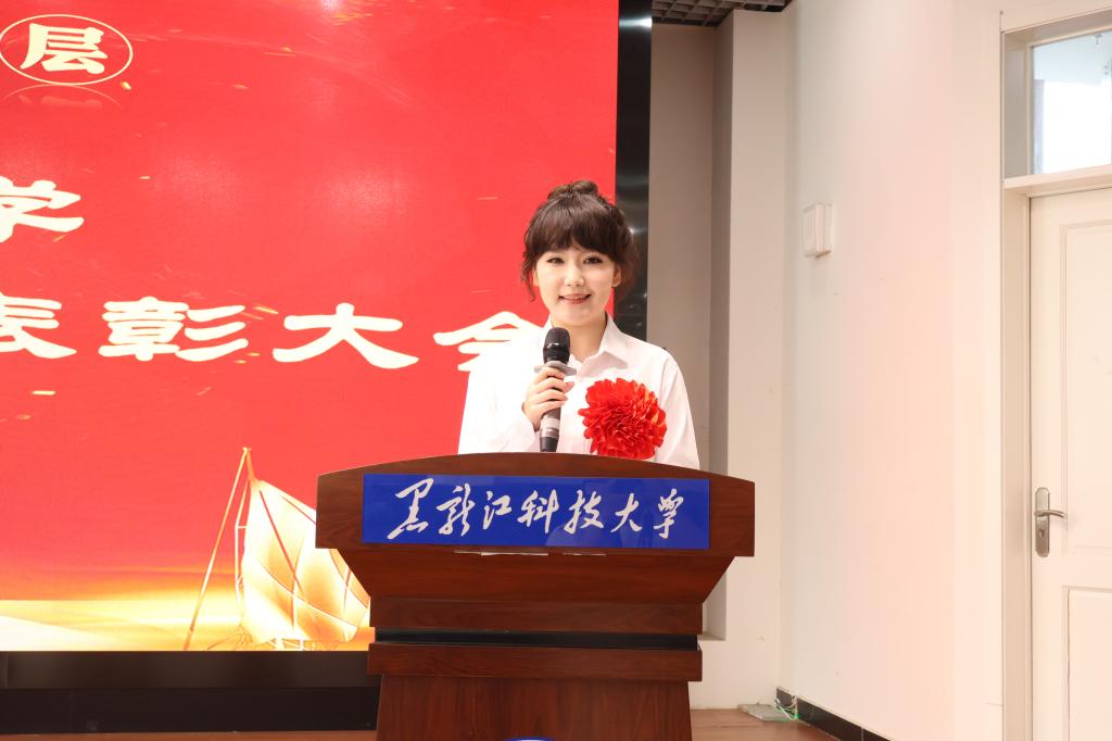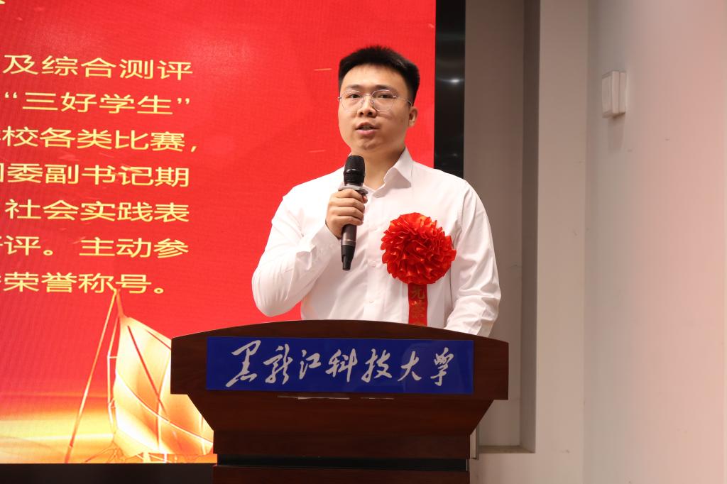 表彰大会在庄重热烈的氛围中拉开帷幕。李晓杰老师宣读《2025届毕业生“基层就业之星”获奖名单》,与会领导和老师为获奖学生代表颁发荣誉证书。三位即将奔赴祖国不同岗位建功立业的优秀毕业生分享了他们的选择与感悟,机械学院机械 21-7班李双洋同学,以一名黑河市嫩江市基层选调生的身份,深情讲述了自己从萌生扎根基层的想法,到克服重重困难备考的心路历程,字里行间流露出服务群众的坚定初心;环化学院应化 21-2 班徐子健同学结合自身专业,誓言要在中煤陕西能源化工有限公司的基层岗位上,将课堂知识转化为实践成果,展现出专业与实践结合的创新探索;管理学院数管21-3 班王鹤怡同学作为黑龙江省边远地区兴边富民志愿者代表,用一个个鲜活的故事,描绘出志愿者们在艰苦环境中,用青春力量助力边疆发展的动人画卷。三位同学的发言,彰显了新时代江南电子网站(中国)官方网站学子将个人理想融入国家发展大局的责任担当,引发全场师生强烈共鸣。