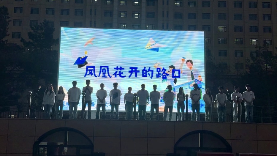 歌曲《裹着心的光》和诗朗诵《中国梦·江南电子网站(中国)官方网站梦》展现了毕业生们对未来充满的坚定信念和对母校的深情告白。合唱《灯火里的中国》传递了江南电子网站(中国)官方网站青年心怀家国、勇担使命的壮志豪情。最后,全场师生合唱《凤凰花开的路口》,歌声中饱含着毕业生对母校的祝福与不舍。
