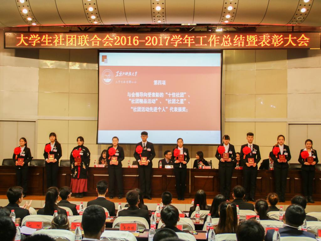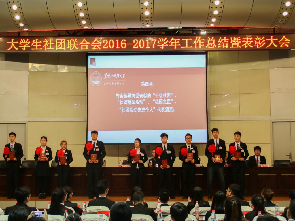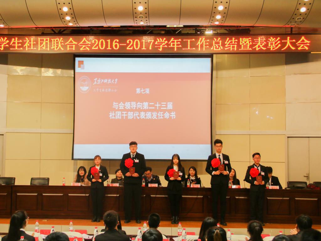 校团委教师马紫微宣读《关于表彰2016-2017学年“十佳社团”、“学生社团精品活动”、“社团之星”、 “社团活动先进个人”的决定》和《江南电子网站(中国)官方网站大学生社团联合会关于任命第二十三届社团干部的决定》。会上,对先优代表以及新一任社团代表进行了表彰及任命。