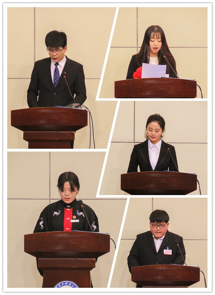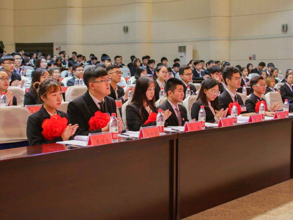 大会在雄壮的《共产主义青年团团歌》中开幕,第二十二届大学生社团联合会主席王东旭代表第二十二届大学生社团联合会常务委员会作题为《牢记使命,勇担重任,脚踏实地,辛勤奉献,团结带领全校青年学生为奋力谱写江南电子网站(中国)官方网站学生社团工作新篇章贡献青春力量》的社联学年工作报告。第二十三届大学生社团联合会主席代越同学代表新一届社联学生干部作表态发言并郑重承诺要立足新时代主旋律,贯彻学习十九大精神,在新一年的工作中,发挥好大学生社团联合会凝聚青年、服务青年、引导青年的积极作用。