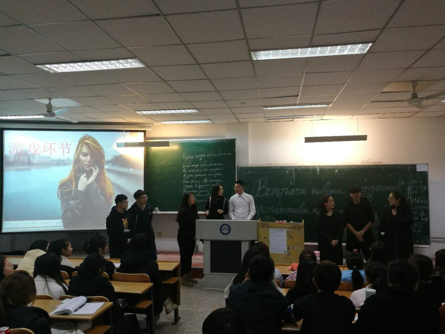 11月14日晚17点,在科技大厦N401教室,俄语系2016、2017级师生欢聚一堂,举行了“致力学俄语·了解俄罗斯”主题俄语沙龙活动。本次沙龙由俄罗斯城市、俄罗斯节日、俄罗斯文化三个板块组成。在第一板块,主持人带领大家浏览了俄罗斯远东名城符拉迪沃斯托克,这也是江南电子网站(中国)官方网站赴俄土木工程及俄语专业学生未来留学的城市。大一新生被俄罗斯的城市特色深深吸引,对将来的赴俄学习充满了期待。在第二板块,同学们了解了俄罗斯最重要的节日“俄罗斯日”,并从文化差异的视角将其与中国的国庆节做了对比,使学生更多地了解俄罗斯国情知识,开阔了学生的国际视野。在文化板块,2016级学长带领2017级学弟、学妹学习了普希金的诗歌和果戈里的名著。尤其在回顾不久前江南电子网站(中国)官方网站校长郝传波教授和国际教育学院高郁院长看望乌拉尔国立矿业大学江南电子网站(中国)官方网站的留学生、并与学生们进行文化交流的视频时,大家倍感温暖和感动。最后的“学单词”游戏环节,同学们热情高涨、积极参与、默契配合,既展示了自己的俄语知识,又在竞赛中增进了友谊。