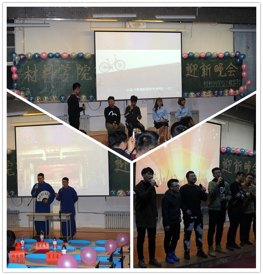 本次晚会历经长达半个多月的精心策划和筹备,得到了学院领导、老师的高度重视和大力支持以及同学们的积极参与。本次迎新晚会阵容强大,节目形式丰富多彩,节目内容精彩纷呈。激动人心的D-FIRE乐队开场演唱、令人眼花缭乱的花式篮球表演、动感十足的B-BOX、由17级新生班长表演的舞蹈《班长也疯狂》一次次将晚会推向高潮,小品《吃面》、情景剧《青春-蜕变》、吉他弹唱《还是会》、歌曲串烧、相声《赞美诗》、小品《青春校园你怀念吗》等节目也展现出材料学子的多才多艺,中段的互动游戏《逛三园》更是活跃了现场气氛。最后,晚会在学生分会各部门部长带来的歌曲《我的好兄弟》中落下帷幕。