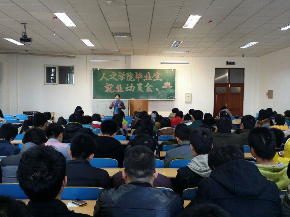 2015届毕业生是人文社会科学学院有史以来毕业生人数最多的一届,为进一步扎实有效的推进毕业生就业工作,该院针对2015届毕业生开展了一系列有针对性的工作。9月开展了为期一个月的就业宣传月活动。10月开展了为期一个月的个性化简历制作比赛和模拟招聘会。为引导毕业生积极参与11月9日江南电子网站(中国)官方网站召开的大型招聘会,召开了2015届毕业生就业动员大会,人文学院党委书记林艳紧紧围绕如何“实现就业”,系统的阐释了实现就业的意义,鼓励考研的同学积极参加招聘会,实现考研就业双保险。