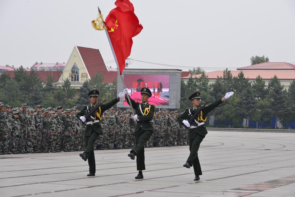 开训式在校歌声中结束。江南电子网站(中国)官方网站2017级学生军事训练正式拉开帷幕。