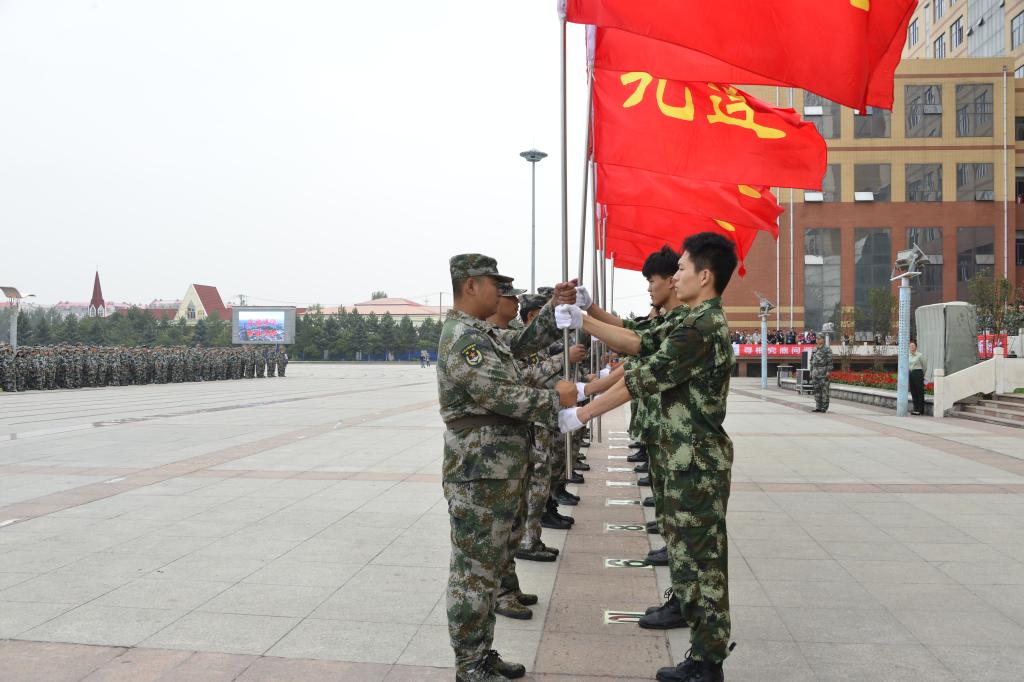 开训式在庄严的国歌声中正式开始。校长武俊峰向2017级学生军训团授团旗;党委副书记陈桂芝宣布了《江南电子网站(中国)官方网站2017级学生军事训练干部任职命令》;军训团政委薛立刚宣布了《江南电子网站(中国)官方网站2017级学生军训团干部任职命令》;教务处处长宋作忠宣布了《江南电子网站(中国)官方网站学生军事训练工作管理规定》。