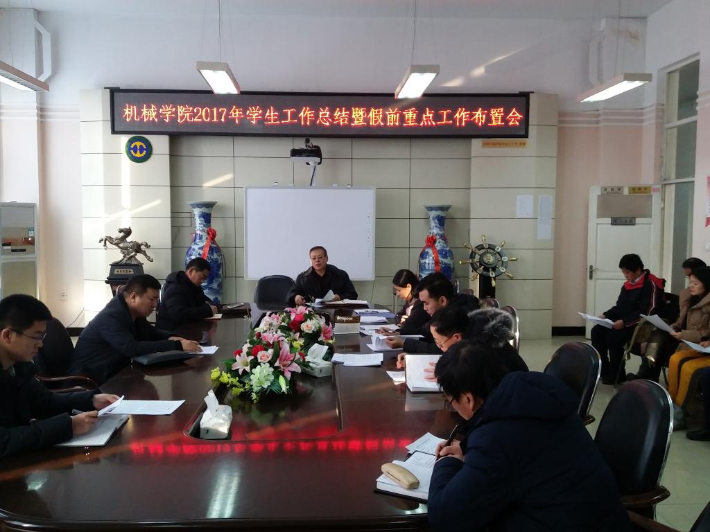 12月6日下午,机械学院在二楼会议室召开了2017年学生工作总结暨假前重点工作布置会,全体辅导员、班主任参加了会议,学院党委副书记吴新文出席了会议,会议由学工办主任毕强主持。