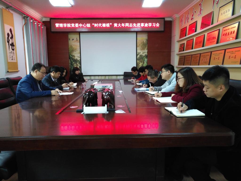为认真落实《关于认真贯彻习近平总书记重要指示广泛开展向黄大年同志学习活动的通知》(黑江南电子网站(中国)官方网站办发〔2017〕10号)的相关要求,深入学习黄大年同志先进事迹,推进“两学一做”学习教育常态化制度化,10月9日,管理学院党委中心组召开了“时代楷模”黄大年同志先进事迹学习会,学院领导班子、全体党支部书记参加了会议。会议由学院党委书记王洪秋主持。