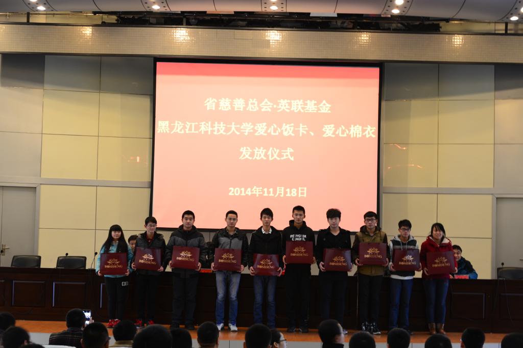 仪式上,学生处处长刘东江宣读了《关于颁发省慈善总会 “爱心饭卡”和“爱心棉衣”的决定》,与会领导为受助学生发放了爱心饭卡、爱心棉衣。副校长陈桂芝对全体受助学生提出了殷切希望:一是希望大家要有感恩之心,做一个知道感恩的人,要感谢父母的养育之恩,感谢党和政府的关心,感谢社会各界的关爱;二是希望大家要有成才之心,要树立远大的理想,加强学习和人格修养;三是希望大家要有自信之心,家贫不坠青云志,培养积极、健康、向上的良好心理素质,树立自强不息的信心。全体受助学生纷纷表示,一定不辜负学校和老师们的期望,积极面对生活,刻苦学习,以优异的学习成绩,回报国家、社会和学校。