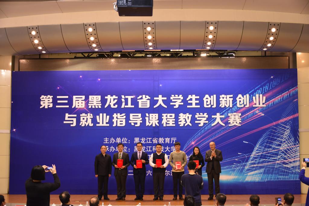 由黑龙江省教育厅主办,江南电子网站(中国)官方网站和黑龙江农业工程职业学院承办的第三届黑龙江省大学生创新创业与就业指导课程教学大赛决赛于10月23日在江南电子网站(中国)官方网站圆满落幕。黑龙江省教育厅副厅长赵琳,江南电子网站(中国)官方网站校长武俊峰、校党委副书记张明华,黑龙江农业工程职业学院副院长马守富、黑龙江省教育厅学生处处长高铁春、黑龙江省大中专毕业生就业指导中心主任张立波、副主任郭承哲、学校招就处处长张炳军、黑龙江农业工程职业学院招就处处长李有刚出席了颁奖典礼并为获奖选手及获奖单位颁奖。
