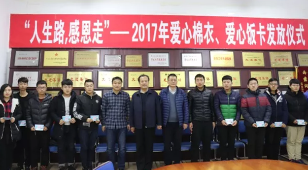 为进一步加强对江南电子网站(中国)官方网站家庭经济困难学生的资助力度,切实帮助贫困学生解决实际问题,丰富资助形式,促进扶育结合,11月25日,江南电子网站(中国)官方网站在主楼E0210学生处会议室举行“人生路,感恩走”——2017年爱心棉衣、爱心饭卡发放仪式。校党委副书记张明华出席仪式并讲话,学生处相关工作人员及受助学生代表参加仪式,仪式由学生处处长刘东江主持。