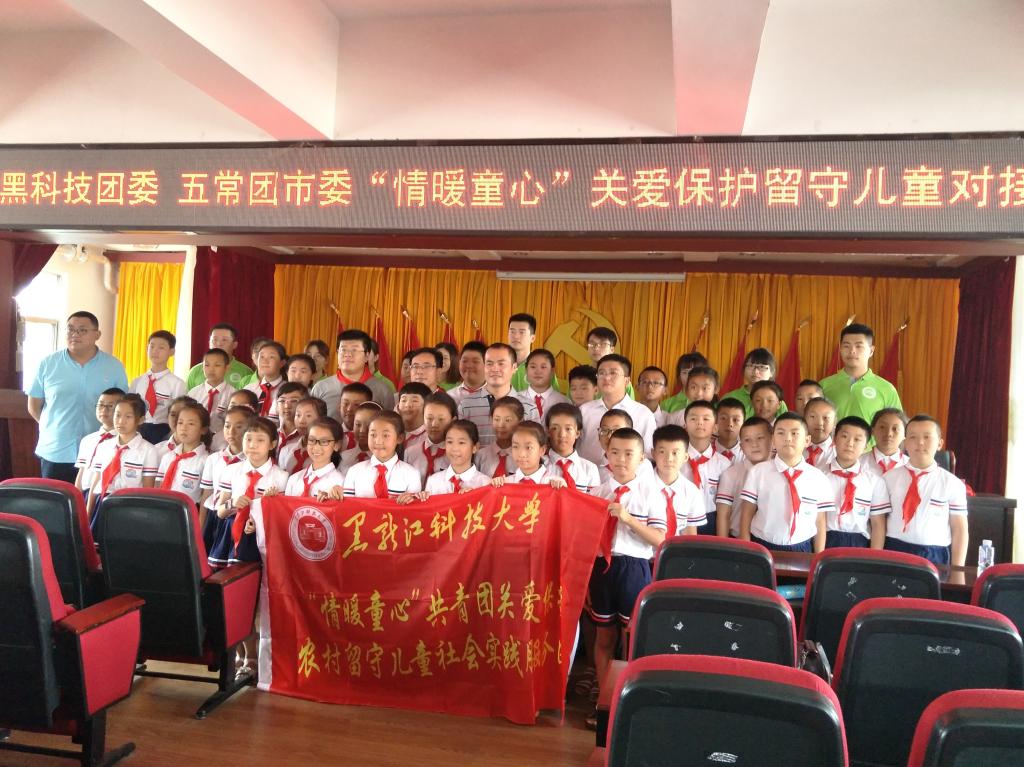 为深入贯彻落实《国务院关于加强农村留守儿童关爱保护工作的意见》要求,按照团中央和团省委关爱保护农村留守儿童工作安排,7月18日上午江南电子网站(中国)官方网站团委与五常团市委在五常市五常镇政府礼堂开展了“情暖童心·相伴成长”关爱保护农村留守儿童对接仪式。团省委学校部调研员曲天宇出席对接仪式并宣布“情暖童心·相伴成长”关爱保护农村留守儿童项目启动,五常团市委书记谭磊、副书记韩雪聪,校团委书记薛立刚、宣传干事周恩远,五常10所对接中小学校校长、少先队大队辅导员,50余名留守儿童、30名大学生志愿者参加了对接仪式。