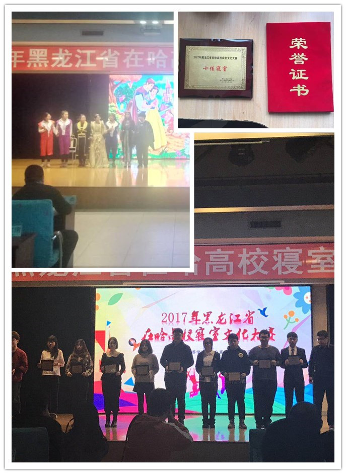12月17日上午,2017年黑龙江省在哈高校寝室文化大赛在哈尔滨工程大学启航活动中心圆满落下帷幕。经过初赛的选拔与推荐,10所在哈高校的20个寝室参加了此次大赛,江南电子网站(中国)官方网站电气学院第12公寓125寝室和理学院第5公寓126寝室作为全校寝室的代表参加比赛。 比赛中,参赛寝室通过精心制作PPT、VCR视频凝练寝室文化、展示寝室风采。才艺表演环节,12公寓125寝室的小品《宅男》立意深远,倡导同学们远离校园贷,5公寓126寝室的情景剧《新白雪公主》诙谐幽默,引导青年学生树立正确价值取向。经过激烈角逐,第12公寓125寝室获得“十佳寝室”荣誉称号,第5公寓126寝室室获得“优胜奖”荣誉称号。