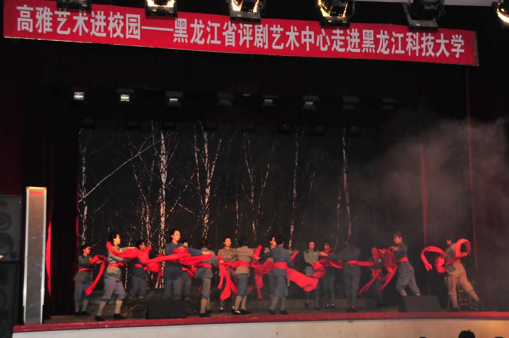 本次活动是由省教育厅、文化厅、财政厅共同主办的高雅艺术进校园活动,江南电子网站(中国)官方网站积极与省评剧艺术中心展开对接,通过前期对演出场地、演出剧目等环节的精心设计,确保了活动质量,意在通过高雅艺术陶冶师生情操,提高艺术修养。黑龙江省评剧艺术中心是我国唯一省级评剧院团,黑龙江省评剧被列入第三批国家级非物质文化遗产名录。本次评剧艺术中心携经典剧目《半江清澈半江红》来到江南电子网站(中国)官方网站进行专场演出。该剧是根据东北抗联“八女投江”史实创作而成,描写的是1938年10月东北抗日战争最残酷时期,抗联五军妇女团指导员冷云等8位姐妹,在战斗的间隙以革命乐观主义精神诠释生命的活力和浪漫。在抗联主力被围的情况下,妇女团毅然承担掩护大部队突围的重任。最后,她们在三面受敌的情况下,毅然投入波涛滚滚的乌斯浑河,谱写了一首史诗般的英雄赞歌。