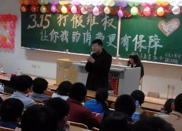 3月5日,校青年志愿者协会通过高潮报、团委官方微博、微信等平台向全校同学发出倡议书,倡导大家努力做到:学习雷锋勤俭节约、热爱集体、助人为乐的精神,用实际行动践行雷锋精神,争做文明大学生。开学伊始,青年志愿者协会、校级学生组织社团以及各学院青年学生开展了内容丰富、形式多样的志愿服务活动:积极响应3·15“国际消费者权益日”打假维权的号召,让消费安全的知识在校园内得到更广泛的传播,校青年志愿者协会举办了“3·15打假维权,让你我的消费更有保障”主题晚会,现场通过播放具有新闻创意的打假视频,表演小话剧,知识问答等节目向观众们现场演示如何辨别日常生活物品的真假,让观众对假冒伪劣产品有了初步的了解和认识,使同学们了解到打假相关知识,在参与或观看晚会的过程中,潜移默化的提高了消费者权益保护意识。