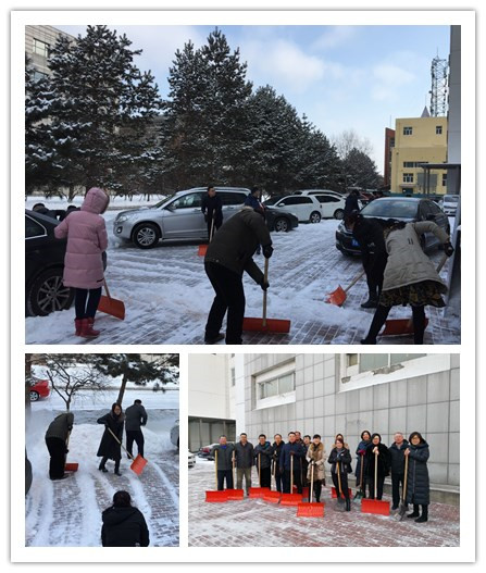 面对公共区域的积雪,理学院教职工不等不靠,在理学院党政领导的号召和带领下,积极投入到清雪的工作中。经过近1个小时的清扫,公共区域的积雪全部清扫完毕。