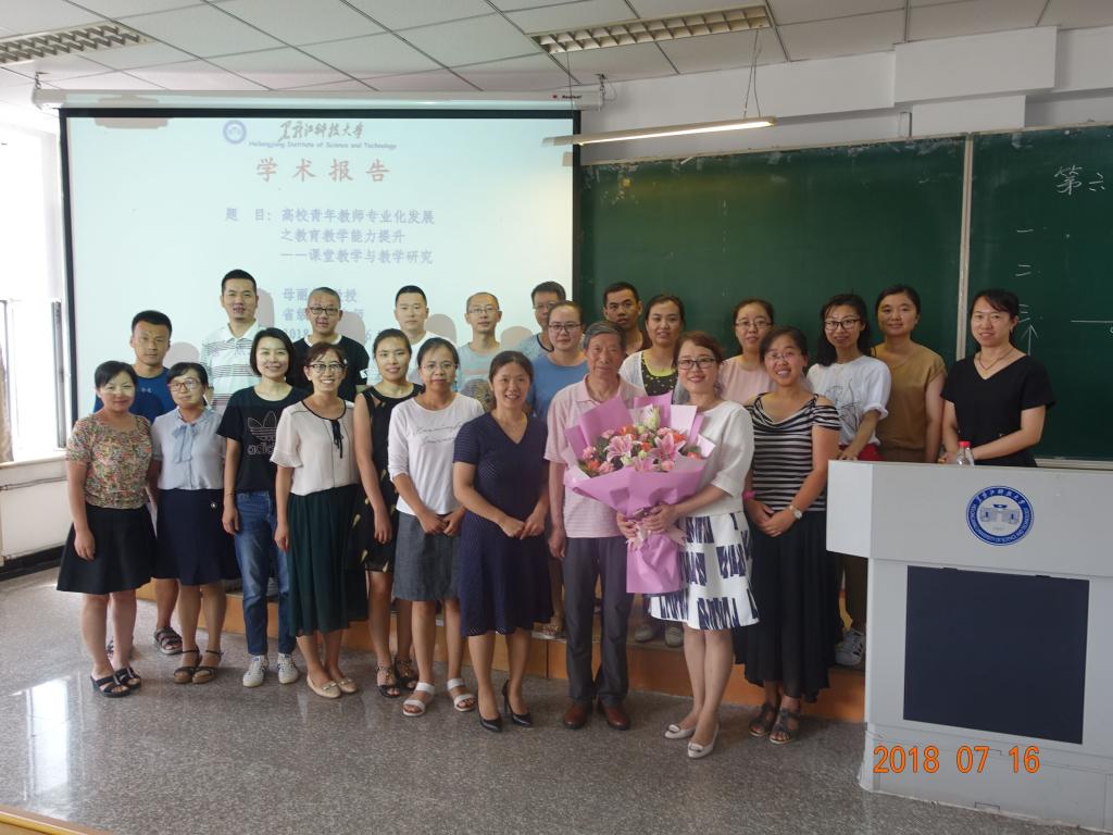 为提升青年教师教育教学能力,计算机学院基础教学部邀请省级教学名师、 国际教育学院院长母丽华教授,于7月16日进行了题为“高校青年教师专业化发展之教育教学能力提升——课堂教学与教学研究”的师资培训学术交流活动。校副总督学邢中光教授、计算机学院院长董春游教授以及计算机学院和国际教育学院的教师聆听了报告。