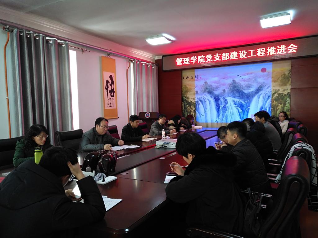 为深入贯彻十九大、十九届二中、三中全会和全国全省高校思想政治工作会议精神,落实教育部开展教育系统党建质量年的要求,推进校党委一届四次全委(扩大)会议的工作安排,管理学院党委于3月7日下午召开党支部建设工程推进会。学院党委书记王洪秋、副书记徐健一和各党支部书记、支部委员参加了会议。会议由徐健一主持。