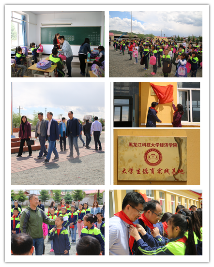 为进一步贯彻落实高校思想政治工作会议精神,扎实推进大学生德育实践工作,充分发挥实践育人功能。经济学院对口阿城区西川村西川小学开展的红领巾志愿支教服务行动,已持续三个月时间。6月1日上午,支教团再次赴西川小学开展了“爱心书包”捐赠暨大学生德育实践基地挂牌仪式。学工部副部长、学生处副处长张元洪,经济学院党委书记张宝成、院长鞠耀绩,党委副书记贺龙军,德育研究与实践中心主任刘维华、经济学院学工办主任张瑞以及阿城区教育局、中心校等有关领导出席了本次活动。