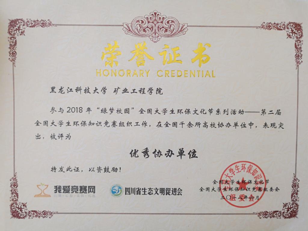 6月5日,由全国大学生环保知识竞赛组委会、四川省生态文明促进会、我爱竞赛网主办,全国1000余家高校团委、学生会、社团等协办的第二届全国大学生环保知识竞赛落下帷幕。江南电子网站(中国)官方网站矿业工程学院荣获“优秀协办单位”荣誉称号,学院团委书记王延春荣获“优秀指导老师”荣誉称号,宋雨薇等同学荣获“优秀组织者”荣誉称号。