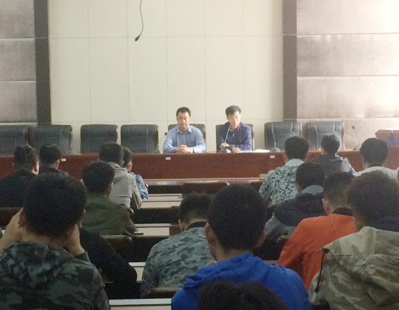 矿业学院党委副书记高明星、副院长肖福坤、采矿教研室主任秦涛、就业辅导员孟祥瑞参加了宣讲会。(孟祥瑞/文秦涛/摄)