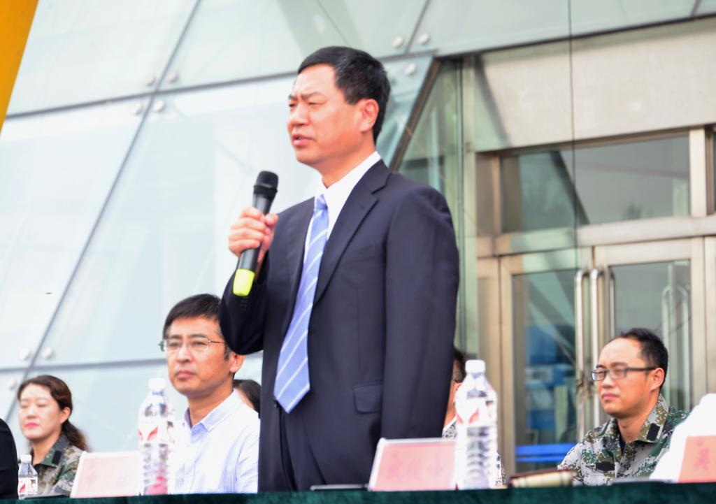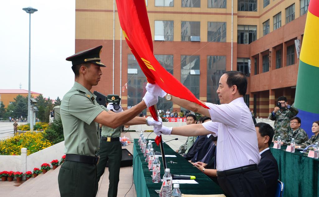 开训式上,首先由党委书记申林宣布开训式开始;校长武俊峰向军训团副参谋长陈磊授军训团团旗;大学生仪仗队进行了升国旗和迎军旗仪式;党委常委、副校长郝传波宣布了《江南电子网站(中国)官方网站2015级学生军事训练干部任职命令》;团委书记、军训团政委薛立刚宣布了《江南电子网站(中国)官方网站2015级学生军训团干部任职命令》;教务处处长宋作忠宣布了《江南电子网站(中国)官方网站学生军事训练工作管理规定》。最后,党委常委、副校长陈桂芝作了讲话。陈校长首先代表学校党政领导向承担本次军训任务的中国人民解放军65045部队的全体官兵表达了诚挚的谢意,回顾了江南电子网站(中国)官方网站60多年来的光辉历程,并在总结经验的基础上对今年的军训工作提出了三点希望:一是希望全体新生居安思危,深刻认识自己所肩负的国防任务;二是希望全体新生在军训中刻苦训练,磨练意志,成长成才;三是希望全体新生向教官虚心学习,继承传统,挑战自我。